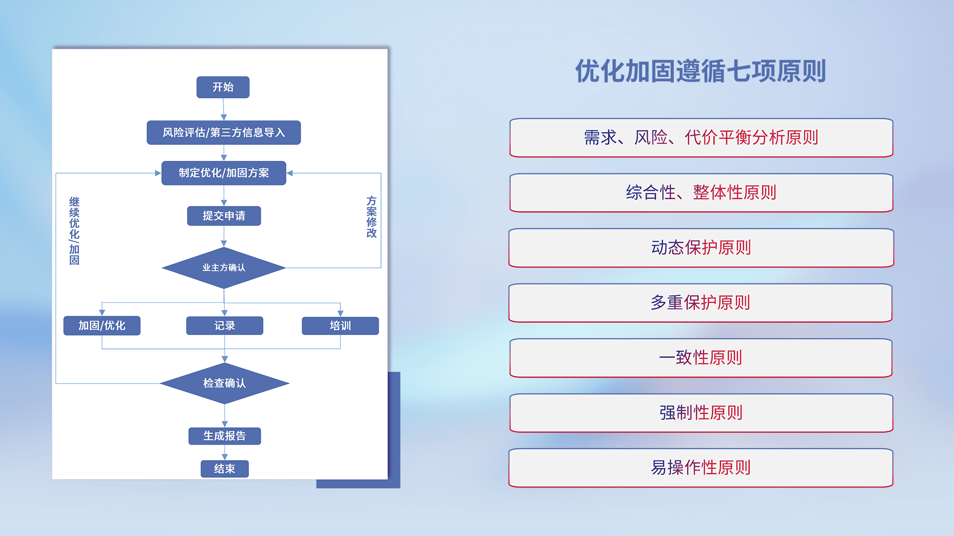 最大程度利用现有资产,,,对评估发现的问题进行封堵与整改,,,防止漏洞被利用,,,提升整体网络安全性,,,,为客户带来高标准的优化加固服务。。。。